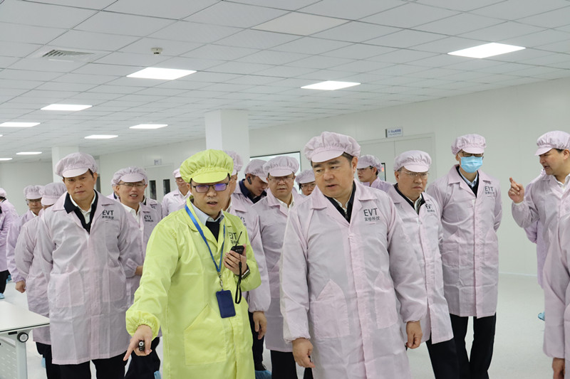在倪斌先生的帶領及介紹下,馬曉暉、王綱、孫賢龍、楊建新、夏文星等市四套班子的領導們對公司車規級產線有了一定的了解。